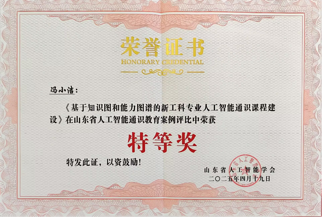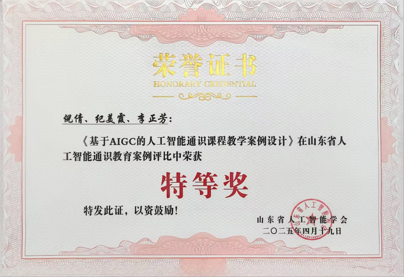 4月19日至20日,山东省人工智能通识教育学术研讨会在烟台举行。我校倪倩老师的《基于 AIGC 的人工智能通识课程教学案例设计》、冯小洁老师的《基于知识图谱和能力图谱的新工科专业人工智能通识课程建设》两项作品脱颖而出,荣获山东省人工智能通识课优秀教学案例特等奖。同时获得该奖项的,还有来自山东大学、山东财经大学等10所本科高校的12项案例作品。