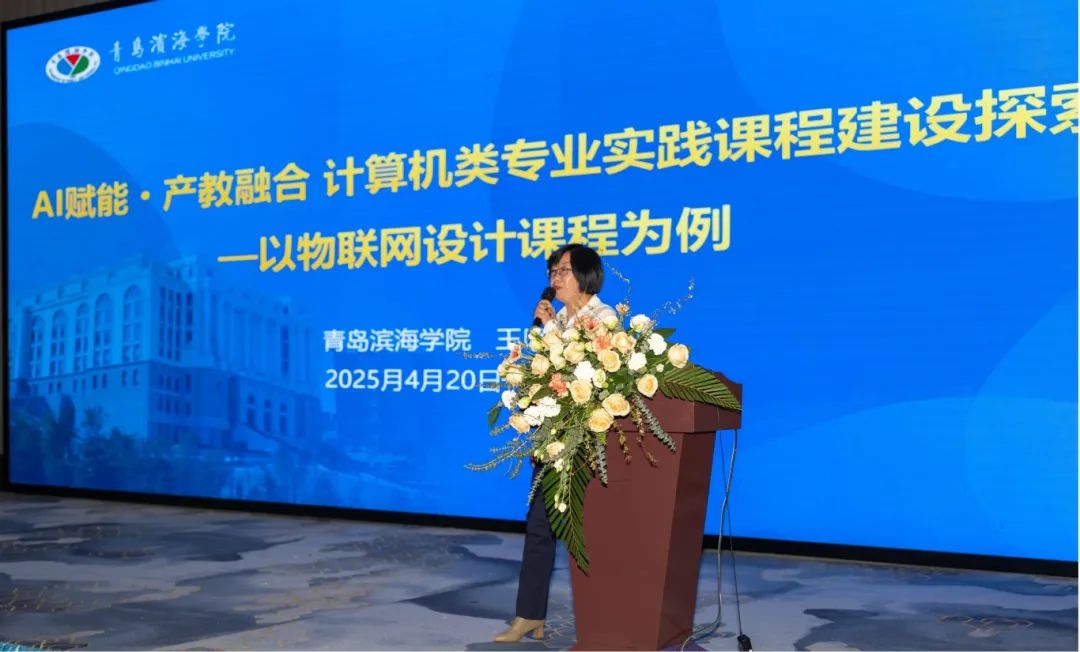 研讨会中,我校信息工程学院王晓玲教授代表学校作“AI赋能·产教融合 计算机类专业实践课程建设探索”专题报告。