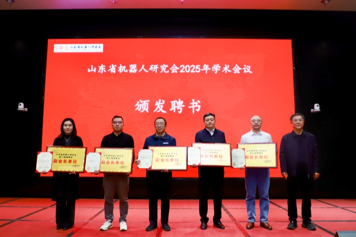 11月7日,山东省机器人研究会2025年学术会议在青岛召开,青岛滨海学院增补为该研究会副会长单位。山东省科学技术协会副主席张波、山东省机器人研究会会长马连湘出席开幕式并致辞,来自省市相关部门、科研院所、产业链上下游企业的200余名代表参会。会议由山东省机器人研究会秘书长滕瑾主持。
