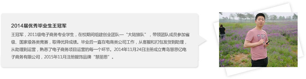本专业是校级特色专业,重视对学生实践和创新能力的培养,经过多年教改实践,形成了独具特色的电子商务人才培养“R&O CPIO 2+1模式”,其中“2+1”是指两年在学校、一年在企业进行人才培养。该模式以学校和企业共建的“真实、开放”基地为环境,以真实的网络营销任务为内容,“干中学、学中干、边干边学、边学边干”进行应用型电子商务人才培养。