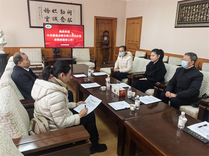 1月23日,青岛市台办副主任赵磊、联络处处长王琳一行来我校调研对台工作。学校常务副校长韩晓萌和医学院、台港澳事务办公室负责同志参与调研交流。
