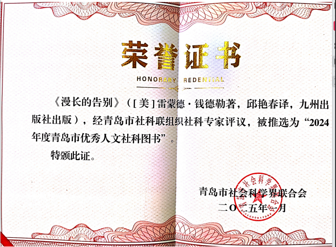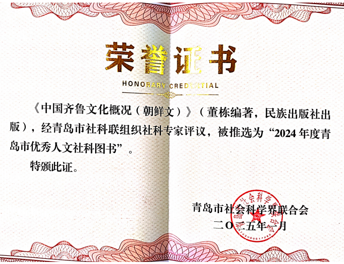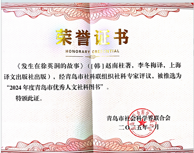 另外,入选“青岛市优秀人文社科图书”的三部著作分别是董栋编著的《中国齐鲁文化概况(朝鲜文)》,李冬梅译著的《发生在徐英洞的故事》,邱艳春译著的《漫长的告别》。