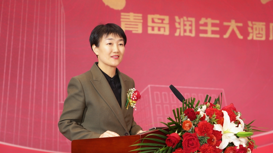 王同娟在致辞中介绍到,润生大酒店是青岛滨海学院继珠山大饭店后,大手笔投资建设的第二个酒店管理学院学生实践教学基地。同时,该酒店作为青岛滨海学院附属医院的国际学术交流中心,北邻青岛滨海学院大珠山校区,将成为学校搭建教学、科研、学术、文化交流、推进社会事业进步的又一重要交流平台。酒店建筑面积41000平方米,按五星级标准建设,是一所极具文化品位的综合性酒店。拥有309间完备现代化设施客房,并设立能容纳1800人的宴会厅、多功能会议室在内的各种大中小型宴会厅、会议室、康乐中心等,高要求、高标准、高配置,满足了学生在高品质酒店实践教学和学校培育现代酒店职业经理人的场地要求。