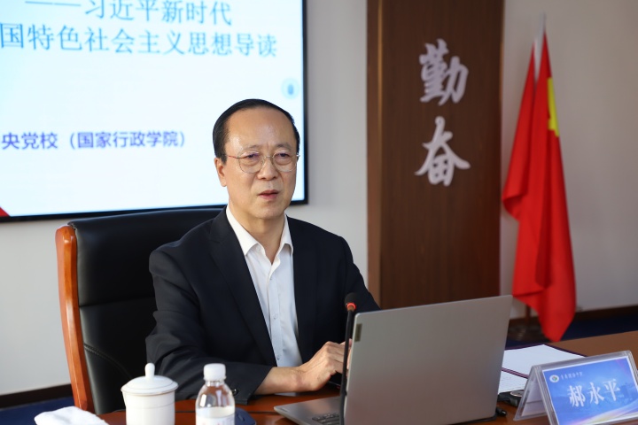 10月16日,中共中央党校(国家行政学院)郝永平教授应邀来到青岛滨海学院,作题为“实现马克思主义中国化时代化新的飞跃——习近平新时代中国特色社会主义思想导读”的专题报告。报告会在学校岱德楼五楼会议室举行。党委书记车滨等党委理论中心组成员学校基层党组织代表和马克思主义学院教师一同聆听了这场高水平的理论辅导。