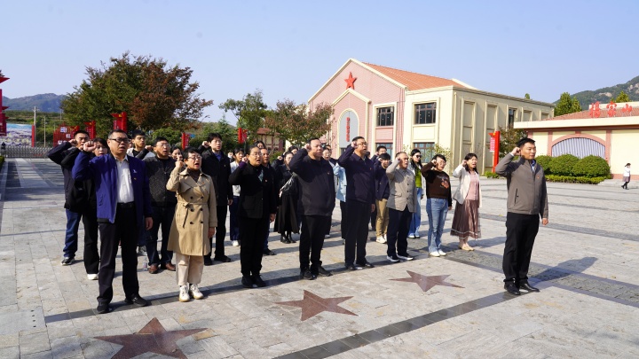 在宣誓广场,面对鲜红党旗,全体党员高举右拳,庄严重温入党誓词,铿锵誓言回荡在红色教育基地上空,表达了不忘初心、牢记使命的坚定决心。大家一致认为,这次活动不仅是一次历史的回望,更是一次精神的传承和党性的锤炼。