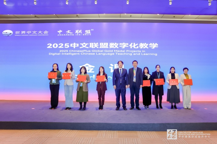 2025世界中文大会主题为“创新引领 数智赋能——让中文零距离”,全球中文联盟数智化教学“金牌”项目评奖是大会重要的一环,是面向国际中文教育领域的教学成果认证与推广活动,旨在发掘、评选并表彰在中文教育领域取得显著成效的标杆性项目和团队,本届聚焦“数智化教学”主题,评选涵盖课程、教师、工具及应用案例四大类别。“金课”奖项是对课程内容设计、数智化技术融合与应用成效的最高级别认可。(素材来源:外国语与国际合作学院 编辑/易雪莲)