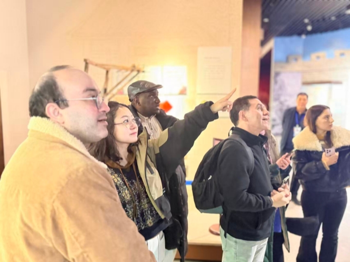 上午,外教团队首站抵达有“胶东母亲河文化窗口”之称的大沽河博物馆。外教们通过馆内丰富的文物陈列、逼真的场景复原及工作人员的生动讲解,系统了解了大沽河流域从古至今的自然生态变迁、历史文明积淀与民俗风情。在“海上丝绸之路”板桥镇历史展厅与胶州黑陶等传统工艺展区,外教们产生浓厚兴趣。他们表示,此次参观不仅是一次历史文化学习,更让自己清晰认识到胶州乃至青岛在古今中外经贸文化交流中的重要地位。