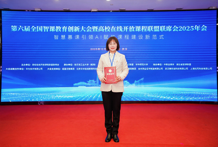近日,由教育部高等教育司指导,高校在线开放课程联盟联席会主办的第六届全国智课教育创新大会暨高校在线开放课程联盟联席会2025年会在湖北武汉圆满落幕。青岛滨海学院教师周传爱荣获“数智技术赋能课程建设优秀案例”奖,该案例是此次山东省民办高校中唯一入选全国年会的课程教学类优秀案例。