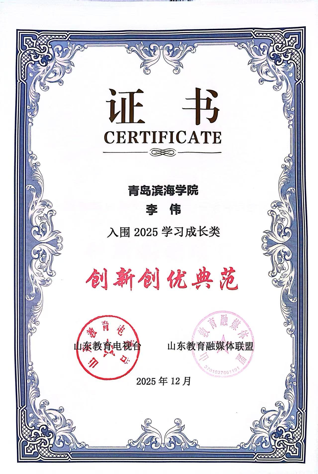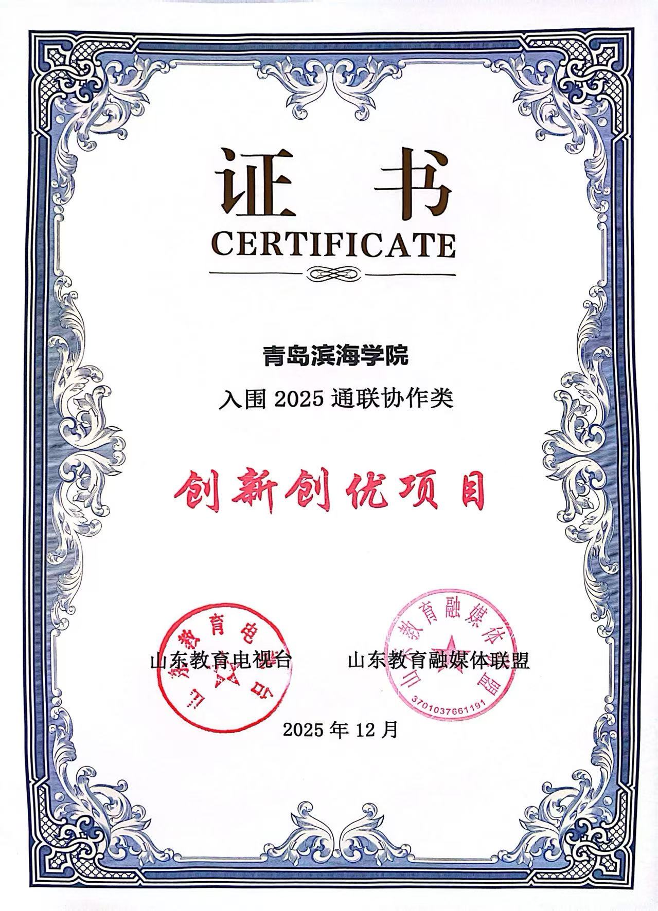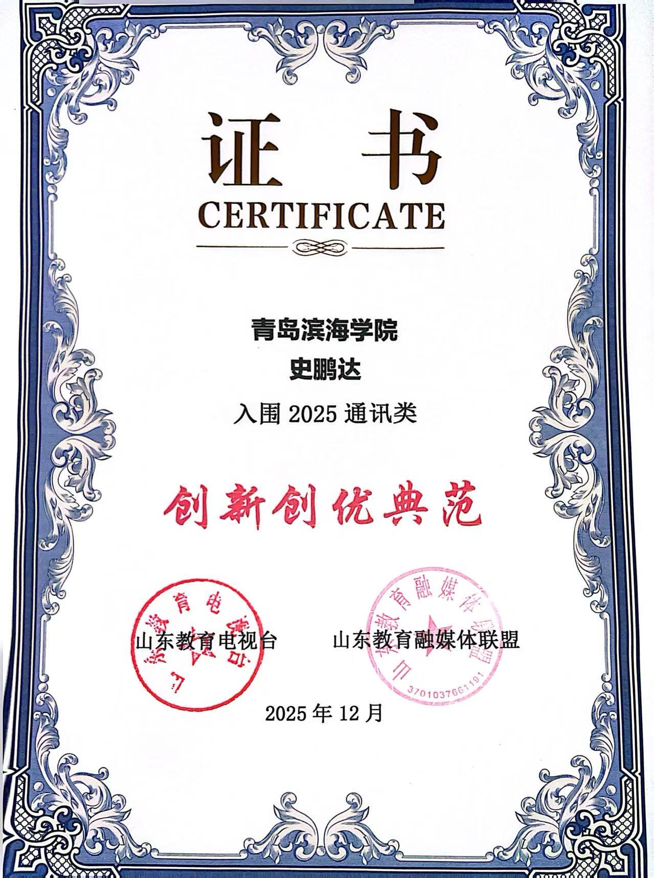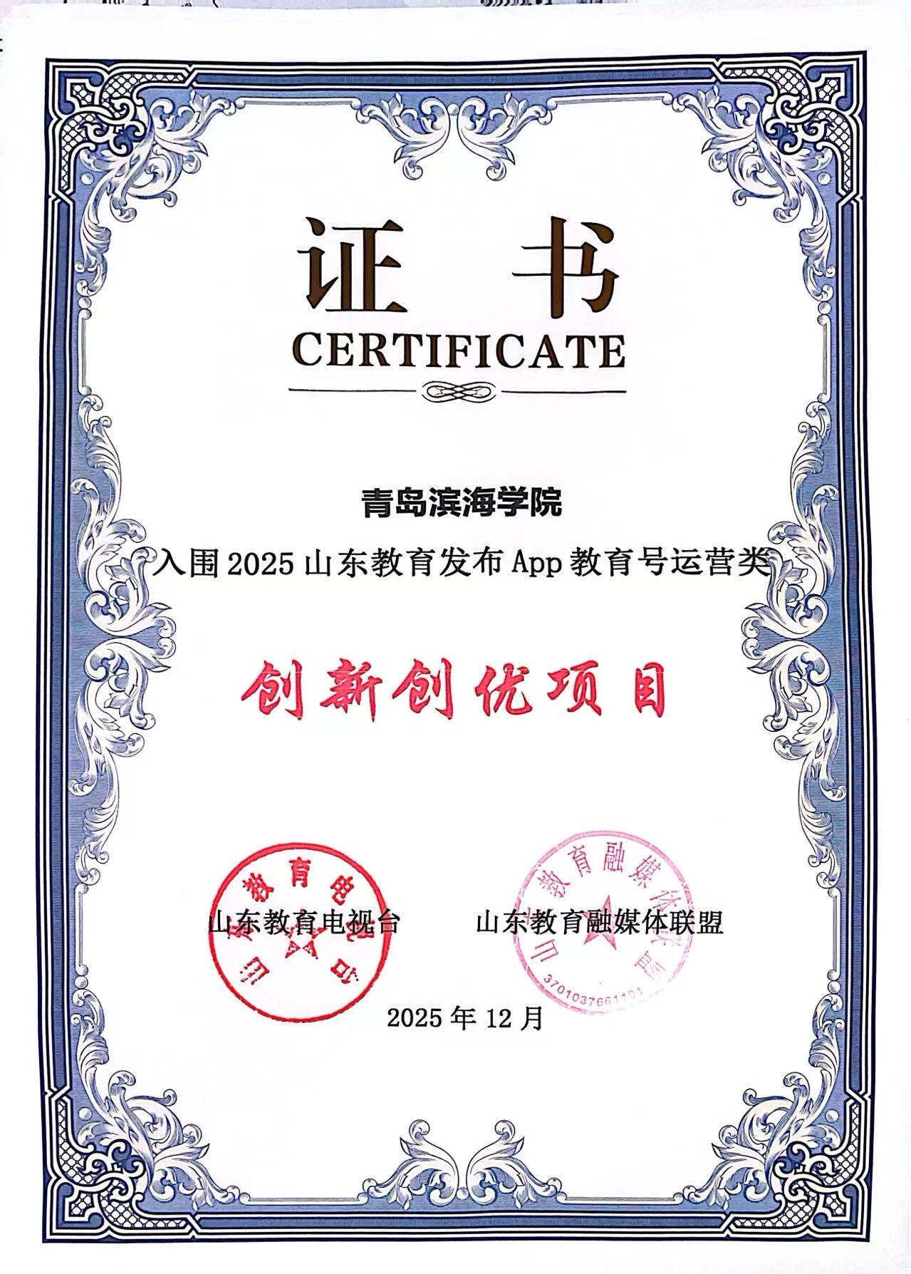 近日,2025“山东教育融媒·泰山奖”评选结果出炉,青岛滨海学院获两项集体奖,两项个人奖。