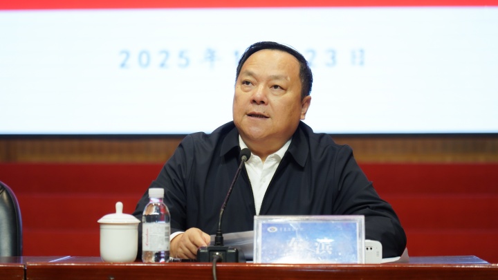 12月23日下午,校党委书记车滨在小珠山校区大礼堂为在校生作形势与政策专题报告。