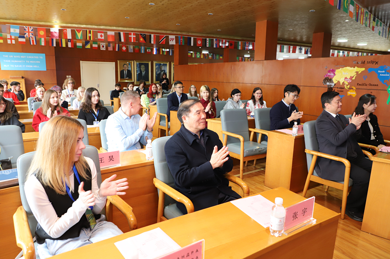 俄罗斯维亚特卡国立大学、基洛夫经济法律高级中学的学生代表乌利亚娜·什切皮娜与阿列西娅·克罗希金娜先后登台发言,真挚分享对此次交流的期待与憧憬,同时对活动主办方青岛滨海学院的周到安排与鼎力支持致以诚挚感谢,期待在此次交流中收获知识并结下友谊。
